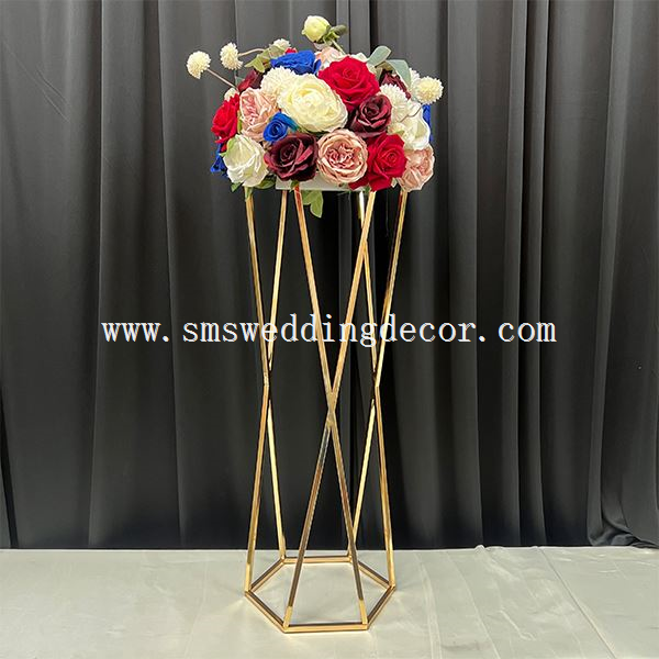 Selle lillealuse värv on üllas ja elegantne prantsuse kuld ning see on väga tekstureeritud. See on valmistatud rauast ning selle vastupidavuse ja ilu parandamiseks kasutatakse kattetehnoloogiat. See on vägamitmekülgneja sobib väga hästi pulmade, pidude, hotellide ja isegi teie kodu kaunistamiseks. Lisaks võite meiega ühendust võtta ka lillede ja muude sellega kasutatavate toodete kohandamiseks.